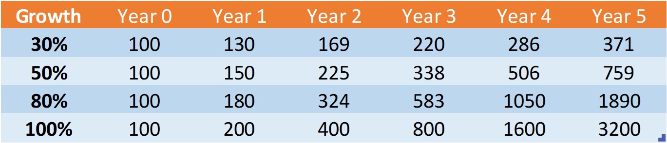 Now let us look at various growth scenarios as below:-